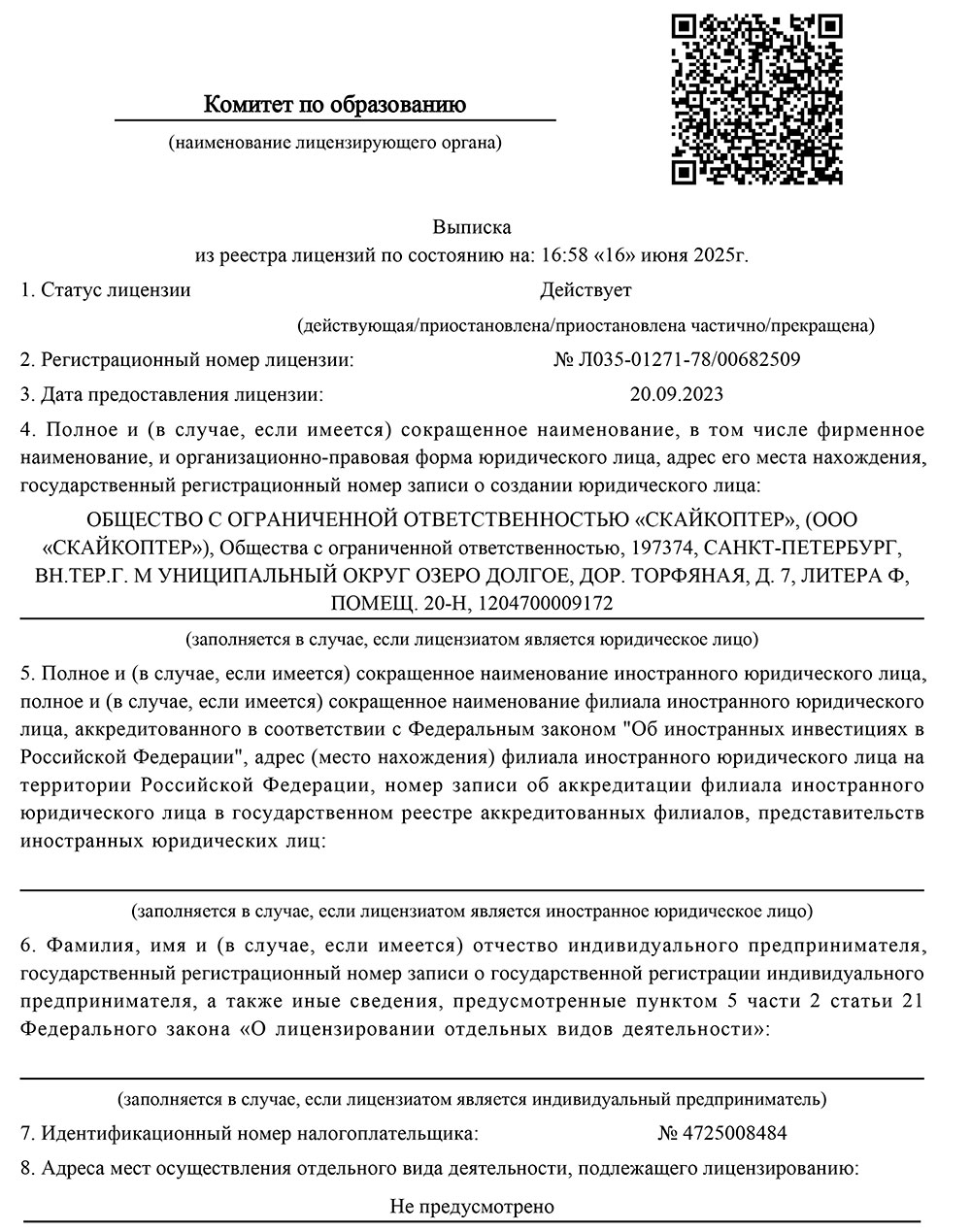 Скайкоптер постоянно развивается и расширяет спектр предоставляемых услуг, в том числе в области образовательной и туристической деятельности.